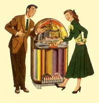 Then of course came the 50's and the advent of iTunes, granted the pocket version wasn't exactly portable but diners and dance halls around the world increased the knowledge of the hip and groovy kids with new ideals of fashion, music and dance.......just like our happening couple on the right.